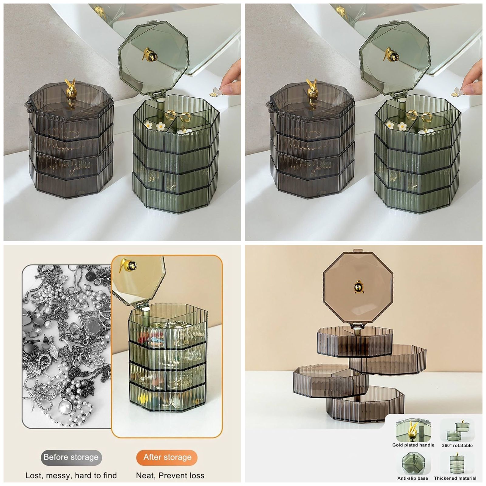 4-Layer Rotating Design: Easy access to all your jewelry and makeup while saving space