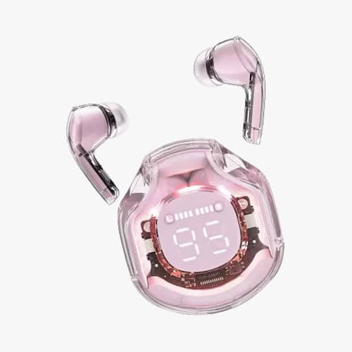 The transparent charging case with LED digital display adds a futuristic look while letting you easily monitor battery levels. With up to 8 hours of playtime and up to 24 hours with the charging case, these earbuds keep you connected all day. Plus, the quick 60-minute charging means less waiting and more listening.