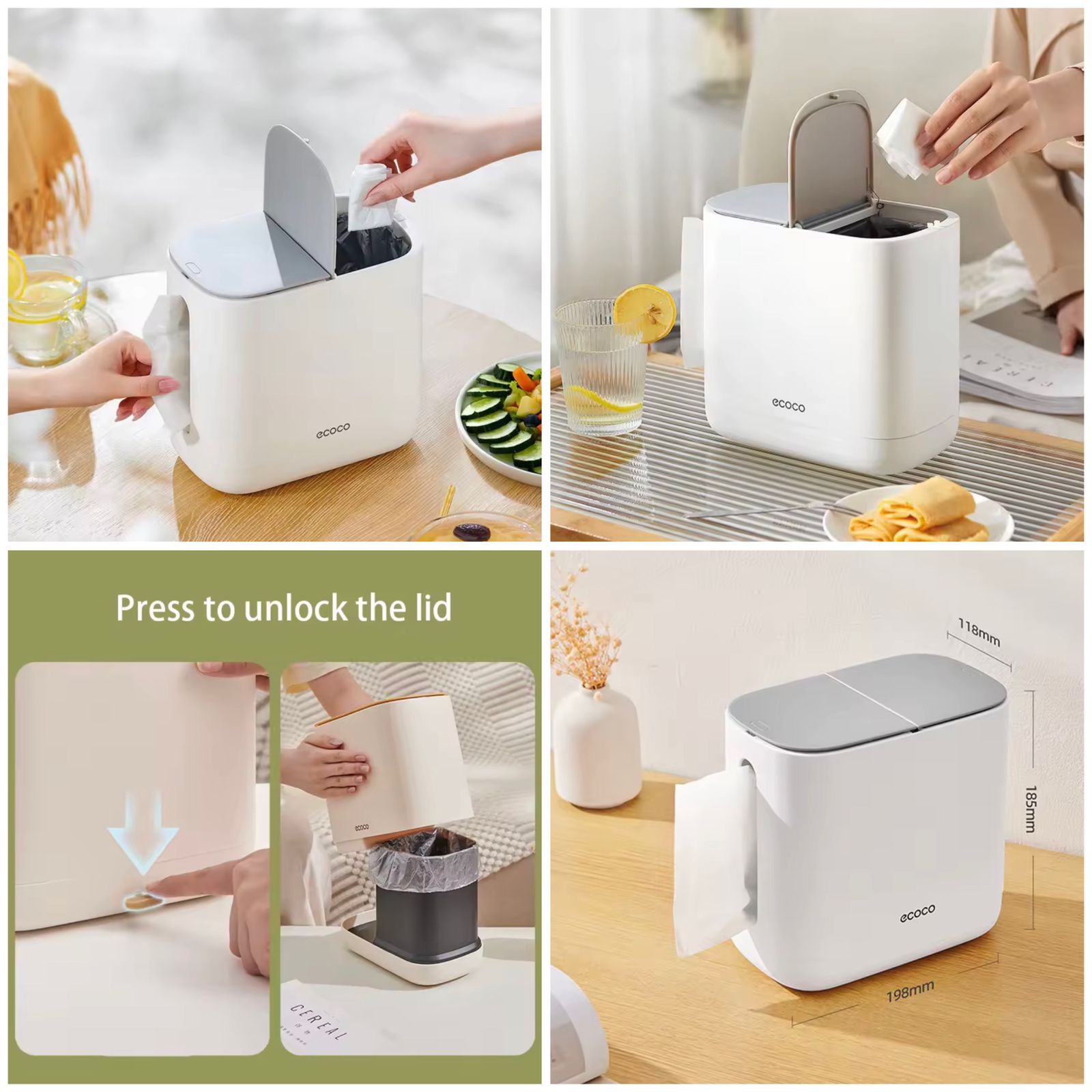 Ecoco 2-in-1 Tissue Organizer with Trash Bin – Modern Space-Saving Household Essential