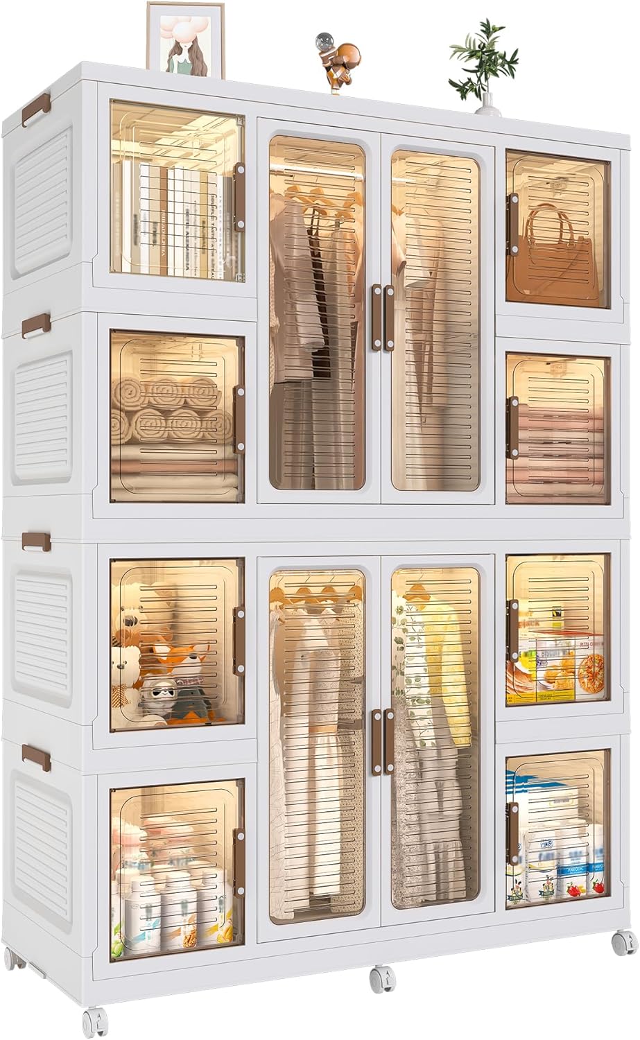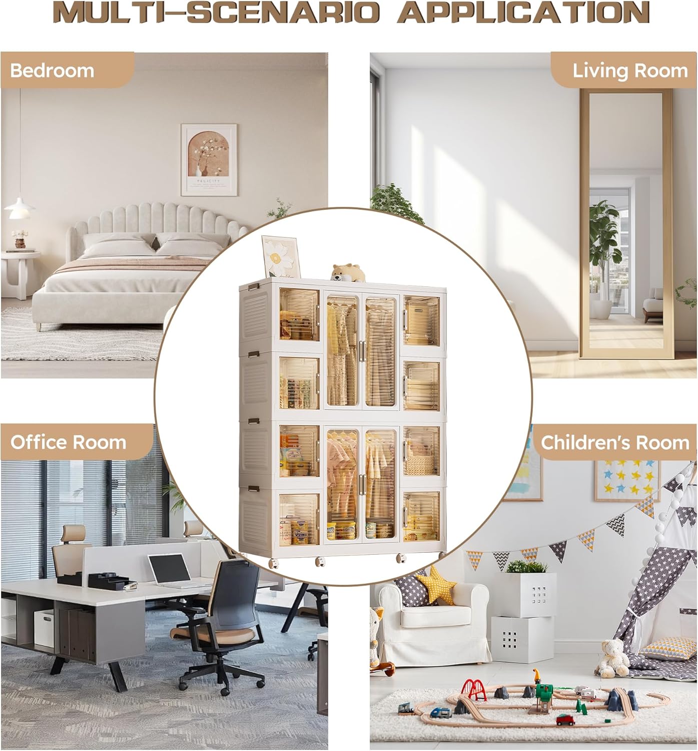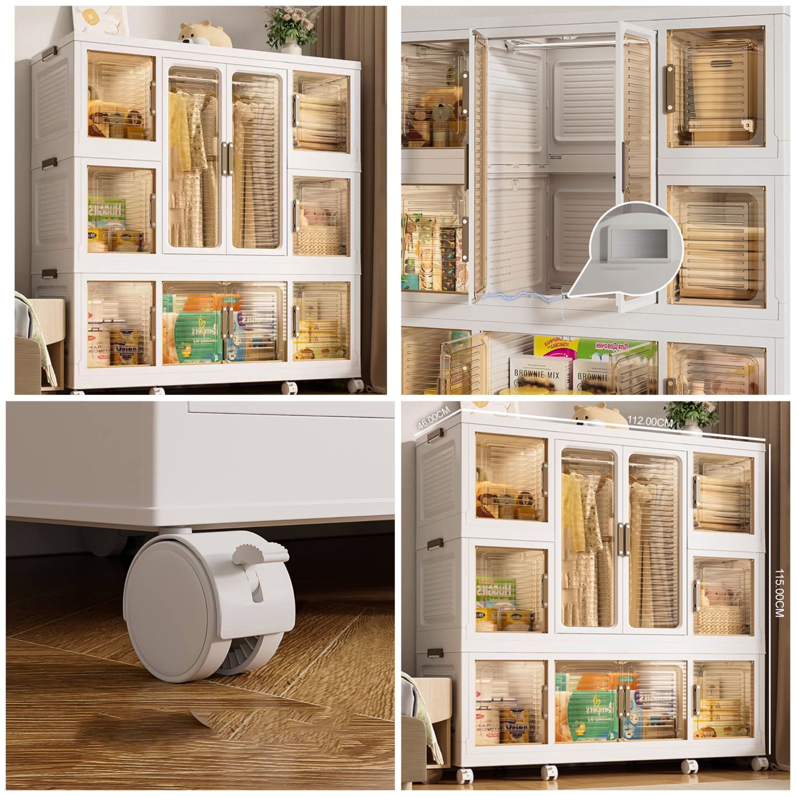 Equipped with wheels for easy movement, this multi-functional wardrobe can be used in bedrooms, living rooms, or play areas—perfect for organizing everything from clothes to toys and accessories.