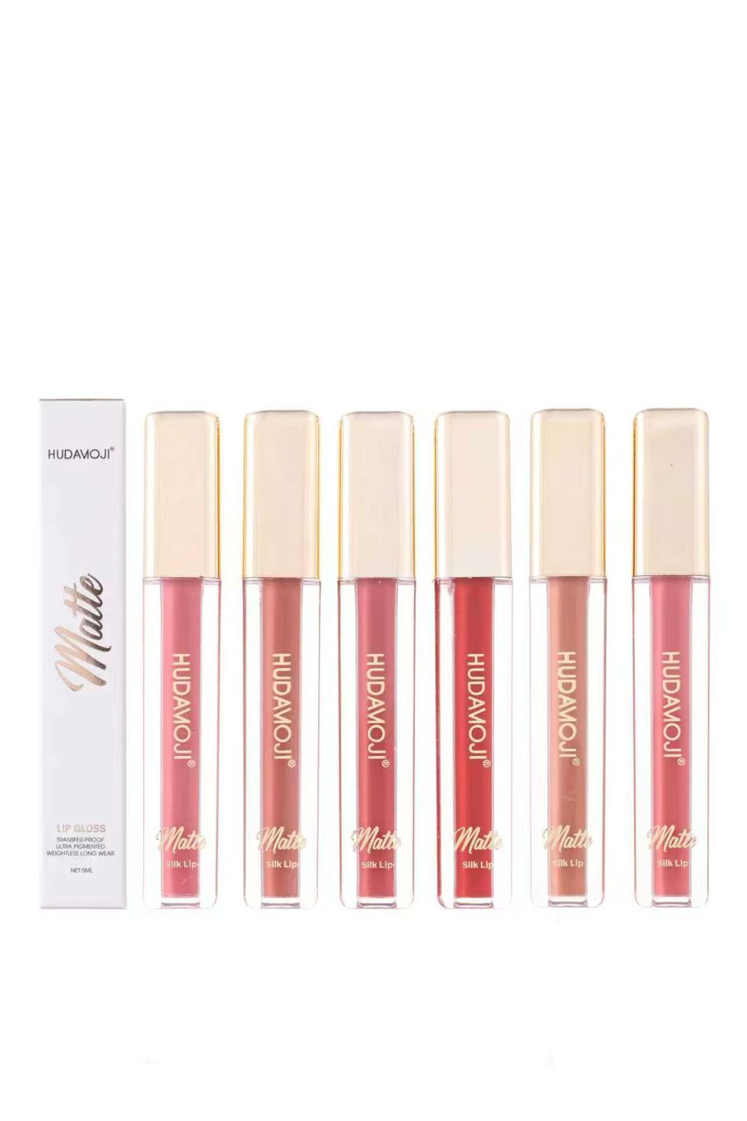 Be the first to review “Huda moji matte gloss 12pc set nude slim gloss”